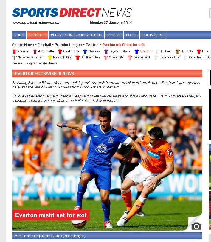 Όπως αναφέρει χαρακτηριστικά η ιστοσελίδα Sports Direct News, «ο Απόστολος Βέλλιος μπορεί να τελειώσει τη.. δυστυχία του στο Μέισερσαϊντ επιστρέφοντας στην Ελλάδα για την ΑΕΚ!». Στη συνέχεια το δημοσίευμα αιτιολογεί τη δυστυχία του Βέλλιου στο Γκούντισον Παρκ λόγω της απραξίας του, αφού ακόμα δεν έχει κάνει επίσημη εμφάνιση αυτή τη σεζόν. Μάλιστα δεν υπολογίζεται απ’τον Ρομπέρτο Μαρτίνεζ, ο οποίος πριν τα Χριστούγεννα του είχε ασκήσει κριτική όσον αφορά την πιθανότητα δανεισμού του.