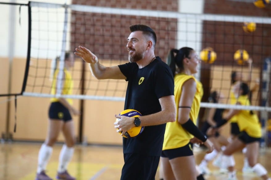 Με χαμόγελα και όνειρα για κατάκτηση της κορυφής, πραγματοποιήθηκε την Πέμπτη (22/08), η πρώτη προπόνηση της γυναικείας ομάδας Βόλεϊ της ΑΕΚ για τη σεζόν 2024-25. Ο νέος τεχνικός της «Ένωσης», Τζιανρόσι Πασκουαλίνο, είχε στη διάθεσή του όλες τις αθλήτριες στο Κλειστό του Ολυμπιακού Χωριού, το οποίο θα αποτελεί και τη νέα σεζόν την έδρα της ομάδας.