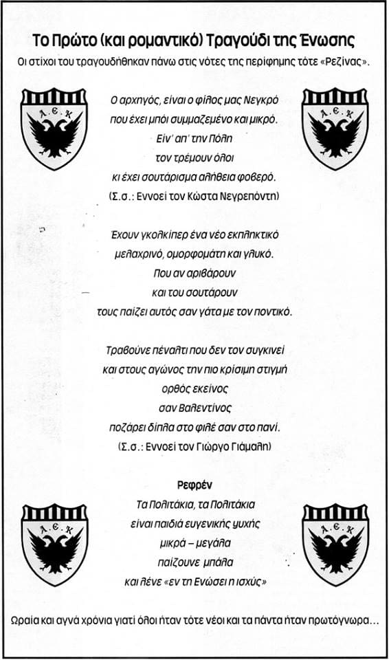 Το AEK LIVE έχει το δικό του ραντεβού με την ιστορία της ΑΕΚ. Έχουμε ξεκινήσει εδώ και έναν χρόνο (!) μια προσπάθεια μελλοποίησης του πρώτου (ιστορικά…) ύμνου της ΑΕΚ. Είναι ένας ύμνος από τα πρώτα χρόνια της Ένωσης, γραμμένος το 1926! Αποτελούσε εκείνη την εποχή, το πιο εύηχο τραγούδι στα χείλη των Κωνσταντινοπουλιτών προσγύφων και όχι μόνο…