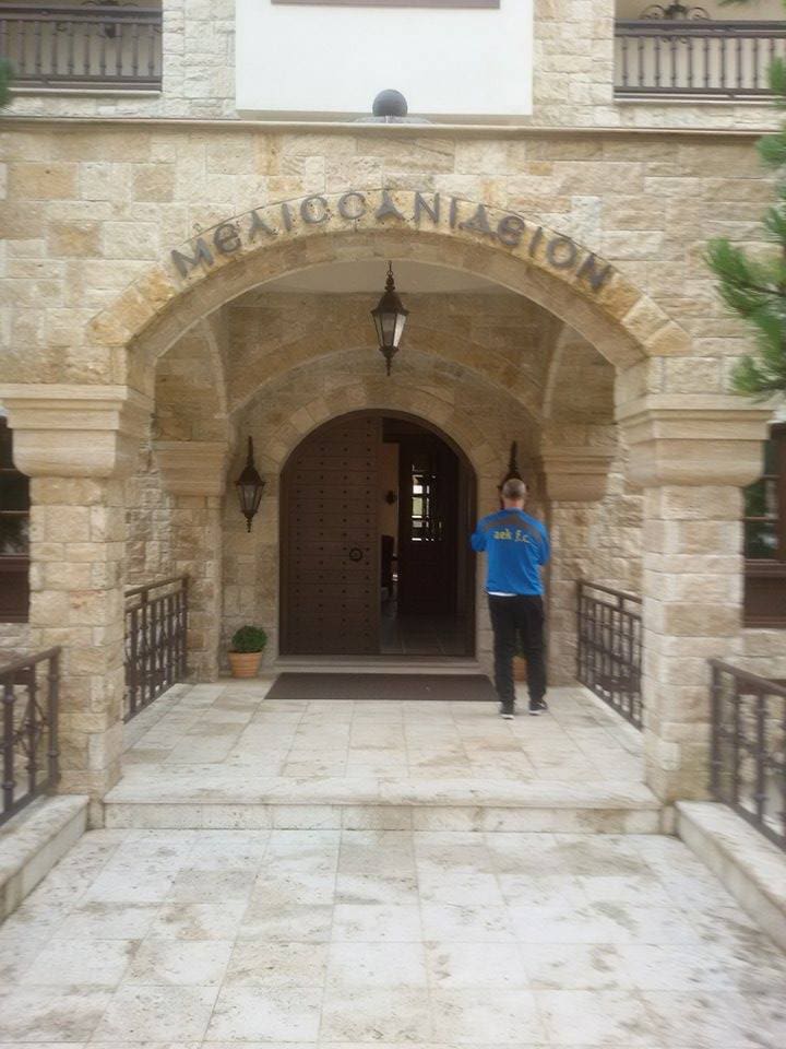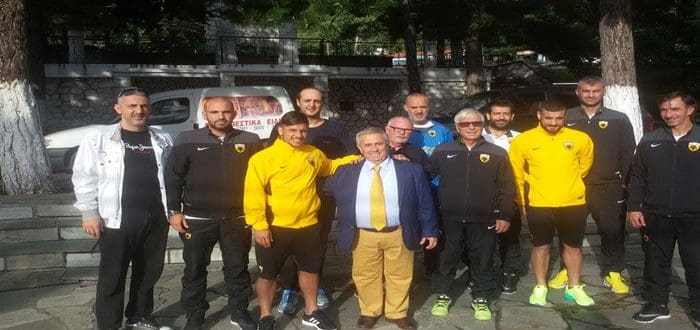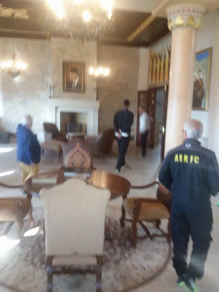 Η κιτρινόμαυρη παρέα ανέβηκε πάνω στην καταπράσινη από έλατα Καστανιά μαζί με τον παλαίμαχο παίκτη της ΑΕΚ, Γιώργο Θεοδωρίδη και τον πρόεδρο της παλιάς ομάδας των Ποντίων Βέροιας(απ’ όπου είχαμε πάρει τον Ηλία Ατματσίδη), Βασίλη Φωτιάδη (ο κοντούλης κύριος δίπλα στον Πλατέλλα). Μάλιστα ο τελευταίος είναι φίλος του Δημήτρη Μελισσανίδη και ξενάγησε την ΑΕΚ στο μοναστήρι.
