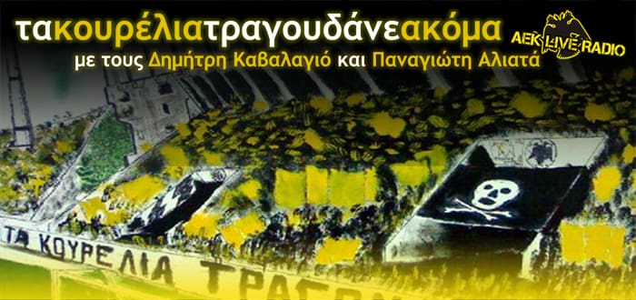 Η WEB ραδιοφωνική εκπομπή που συσπειρώνει τις τρεις βασικές τάσεις στην ψυχοσύνθεση τον οπαδών της ΑΕΚ και σήμερα θα είναι Σούπερ αποκαλυπτική! Περιμένουμε την ενεργό συμμετοχή σας στην διαδραστική ραδιοφωνική κολεκτίβα με την επονομασία: «Τα κουρέλια τραγουδάνε ακόμα».