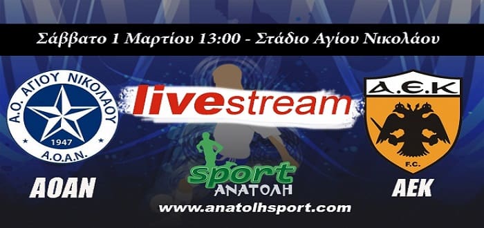 Η ιστοσελίδα Anatolhsport.com θα μεταδώσει τηλεοπτικά το παιχνίδι του ΑΟΑΝ με την ΑΕΚ, με τους φίλους της ΑΕΚ, να βλέπουν μετά από αρκετό καιρό, εκτός έδρας παιχνίδι της ΑΕΚ.