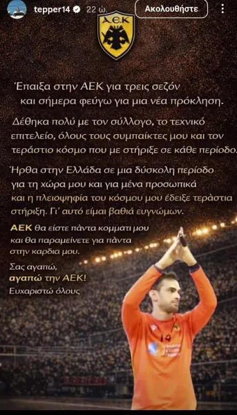Αυτό που φοβηθήκαμε και δυστυχώς προβλέψαμε… έγινε μέσα σε λίγες ώρες. ΚΑΙ ο Τέπερ μετά τον Ζεντί ανακοίνωσε την αποχώρησή του από την ΑΕΚ η οποία δεν έχει πει κουβέντα!