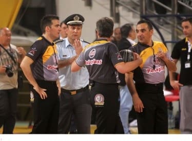 «Ακριβώς μετά το εναρκτήριο τζάμπολ οπαδοί τη Α ομάδας (Αρης), πέταξαν εντός του αγωνιστικού χώρου δεκάδες ρολά ταμειακής και ένα κουτάκι μπύρας (γεμάτο). Ο αγώνας διεκόπη για 5’ λεπτά μέχρι να καθαριστεί ο αγωνιστικός χώρος. 2.19’ πριν τη λήξη της Α’ περιόδου οπαδοί της Α’ ομάδας (Αρης), πέταξαν εντός του αγωνιστικού χώρου αναπτήρα- 1.47’ πριν τη λήξη της Α’ περιόδου, οπαδοί της ομάδας Α (Αρης), φώναζαν εν χορώ το σύνθημα «Κάτσε καλά πουτ… γιε» -8’’ πριν τη λήξη της Α’ περιόδου οπαδοί της Α ομάδας (Αρης), πέταξαν εντός του αγωνιστικού χώρου μπουκάλι με νερό- 2’’ πριν η λήξη της Α περιόδου οπαδοί της Α’ ομάδας (Αρης) φώναζαν «Γαμ… και βία στη διαιτησία», στο ίδιο χρονικό σημείο οι οπαδοί της Α ομάδας (Αρης), που βρίσκονταν στις πολυθρόνες ακριβώς απέναντι στη γραματεία, μας έφτυσαν, μας απείλησαν, με τη φράση «Θα πεθάνετε εδώ απόψε μουνοπ…».