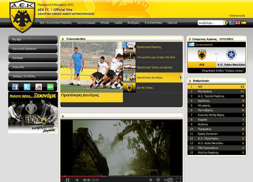Το βίντεο της παρουσίασης παίζει πλέον και το επίσημο σάιτ της ΑΕΚ!