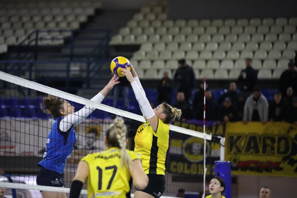 Ο αγώνας ξεκίνησε με τις δύο ομάδες να πηγαίνουν χέρι-χέρι (3-3, 5-5), στη συνέχεια με μια αντεπίθεση διαρκείας οι γηπεδούχες είχαν το προβάδισμα με 8-5 και 14-11. Με μπλοκ από την Τρίνκοβα και άσσο από την Καββαδία η «Ένωση» ισοφάρισε σε 14-14. Από εκείνο το σημείο και έπειτα, η ΑΕΚ δεν έβρισε τις λύσεις που χρειαζόταν επιθετικά και βρέθηκε να χάνει το πρώτο σετ με 25-19.