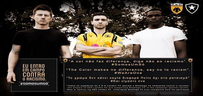 Τα παιδιά της ΑΕΚ Λονδίνου εντυπωσιάζουν όχι μόνο με την αγάπη τους για την ΑΕΚ, αλλά και για το κοινωνικό τους πρόσωπο…. Ξεκίνησαν μια μεγάλη καμπάνια ενάντια στον ρατσισμό με φόντο τους παίκτης της ομάδας και με σλόγκαν “Το χρώμα δεν κάνει καμία διαφορά…Πείτε ΟΧΙ στον ρατσισμό #ΕίμαστεΟλοιΕνα”.
