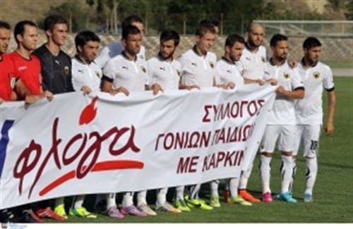 Το χθεσινό φιλικό της ΑΕΚ με την ομάδα του Ρήγα Φεραίου, πραγματοποιήθηκε για έναν πολύ καλό σκοπό. Είχε τον χαρακτήρα προσφοράς στο πολύ σημαντικό έργο που επιτελεί ο σύλλογος γονιών παιδιών με καρκίνο “Φλόγα”, μια και τα έσοδα διατέθηκαν για τους σκοπούς του συλλόγου. Ο κόσμος έδειξε την ευαισθησία του με την ανταπόκριση του και καταχειροκρότησε τους παίκτες και των δύο ομάδων, ειδικά την στιγμή που φωτογραφήθηκαν με το πανό της “Φλόγας”
