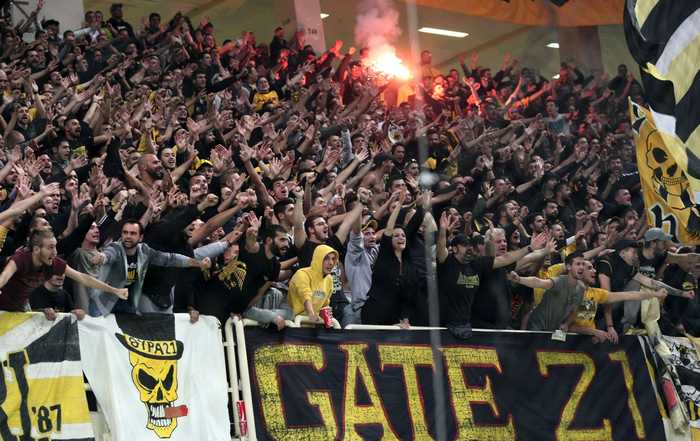 Απίστευτη ατμόσφαιρα δημιούργησαν για μία ακόμη φορά οι οπαδοί της ΑΕΚ στο ντέρμπι με τον Ολυμπιακό στο κλειστό του ΟΑΚΑ.