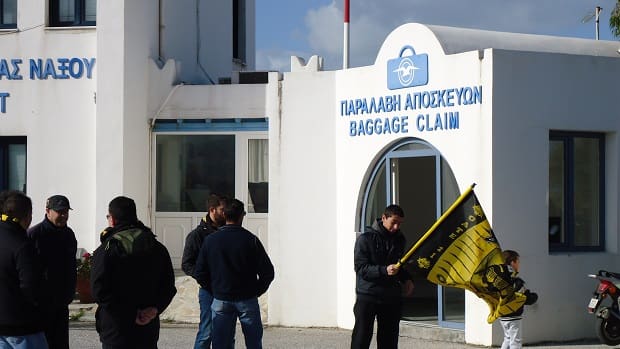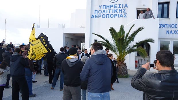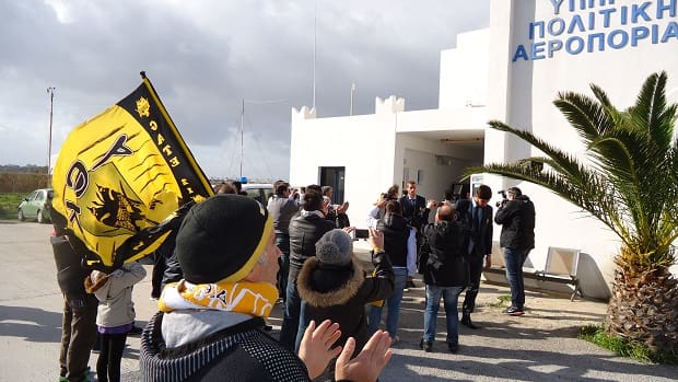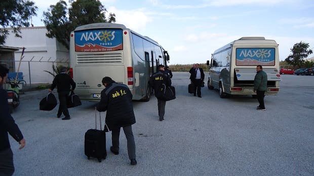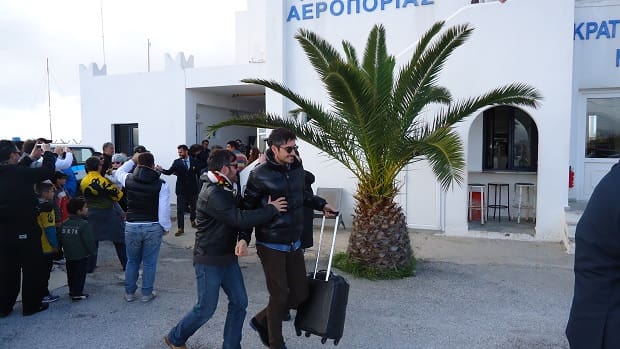 Απίστευτη αποθέωση γνώρισε η αποστολή της ΑΕΚ στο αεροδρόμιο της Νάξου από περίπου 100 οπαδούς της που την περίμεναν καρτερικά. Οι παίκτες της Ένωσης εντυπωσιάστηκαν με το θέαμα που αντίκρισαν, ενώ τα συνθήματα δεν έλεγαν να κοπάσουν. Άλλωστε, είναι η πρώτη φορά που η ΑΕΚ επισκέπτεται το νησί και η λαχτάρα των φίλων της ομάδας στο νησί να δουν από κοντά τα ινδάλματά τους είναι τεράστια.