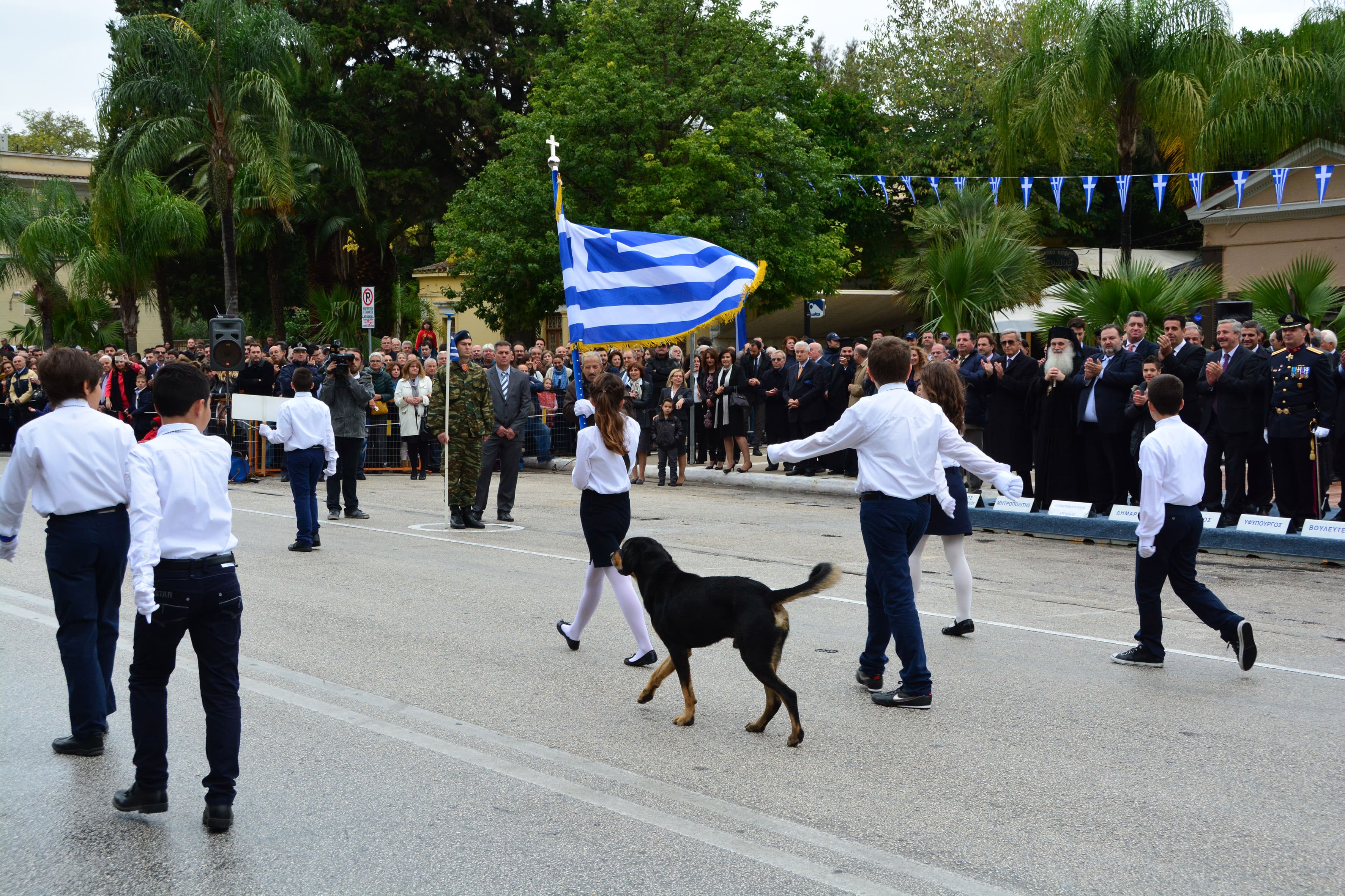Κι ενώ οι μαθητές παρελαύνουν στην πόλη του Ναυπλίου κατά τη διάρκεια εορτασμών για την επέτειο της 28ης Οκτωβρίου 1940, ένας σκύλος αποφάσισε να τους συνοδεύσει, παρελαύνοντας κι εκείνος δίπλα τους, προκαλώντας αυθόρμητα χαμόγελα σε όσους παρακολουθούσαν.