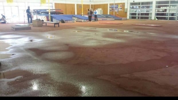 Η έντονη βροχόπτωση του τελευταίου 48ωρου έδειξε για άλλη μια φορά την έλλειψη συντήρησης του κλειστού γηπέδου και των προπονητικών εγκαταστάσεων στο ΟΑΚΑ – όπου κατα κύριο λόγο προπονούνται αθλητές και αθλήτριες του στίβου – το οποίο κρίνεται ακατάλληλο για πραγματοποίηση προπονήσεων μέχρι νεωτέρας…