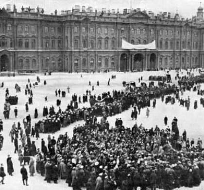 Ιανουάριος 1905. Χιλιάδες εργάτες της Πετρούπολης, με επικεφαλής τους έναν παπά, τον Γκαπόν, που ήταν πράκτορας της Ασφάλειας, ξεκινούν από τις εργατικές συνοικίες για τα Χειμερινά Ανάκτορα, προκειμένου να υποβάλουν υπόμνημα στον Τσάρο με τα αιτήματά τους. Η πομπή ήταν απολύτως ειρηνική. Ωστόσο, τα τσαρικά στρατεύματα άνοιξαν πυρ, δολοφονώντας δεκάδες διαδηλωτές. Η Κυριακή αυτή θα μείνει στην ιστορία ως «Ματωμένη Κυριακή». Απευθυνόμενοι στους εργάτες, οι Μπολσεβίκοι θα τονίσουν τότε σε προκήρυξή τους: «Δεν πρέπει να παρακαλούμε τον τσάρο, δεν πρέπει να ταπεινωνόμαστε μπροστά στον άσπονδο εχθρό μας, αλλά να τον γκρεμίσουμε από το θρόνο… Η απελευθέρωση των εργατών μπορεί να είναι έργο μόνο των ίδιων των εργατών. Μην περιμένετε την ελευθερία ούτε από τους παπάδες, ούτε από τους τσάρους». Μετά τη «Ματωμένη Κυριακή», η επανάσταση απλώθηκε σ’ ολόκληρη τη Ρωσία, με αποκορύφωση την ένοπλη Δεκεμβριανή εξέγερση των εργατών της Μόσχας.