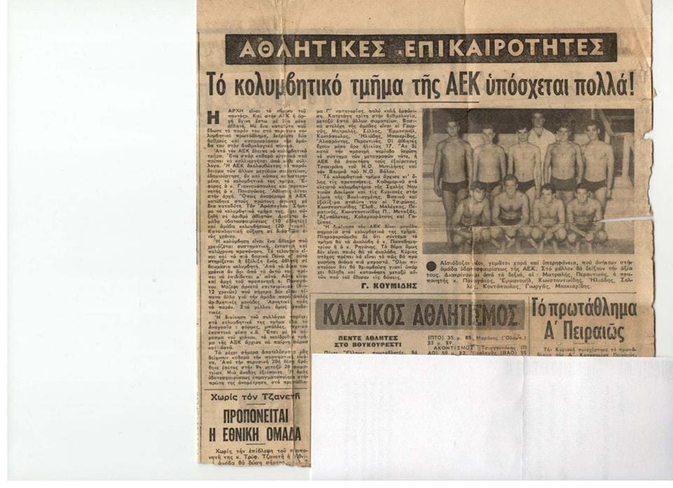 Η άγνωστη ιστορία της ΑΕΚ στην υδατοσφαίριση…