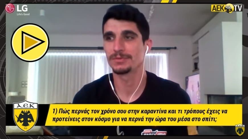 Το AEK TV «επισκέφτηκε» μέσω Skype τον αρχηγό της ομάδας στο σπίτι του και μας απάντησε στις ερωτήσεις που εσείς στείλατε μέσω του Instagram της ΠΑΕ. Ο αρχικός προγραμματισμός ήταν να επιλέξουμε 20 ερωτήσεις, όσες ο αριθμός της φανέλας του. Τελικά, έγιναν 21. Η… +1 ήταν ερώτηση – έκπληξη από συμπαίκτη του.