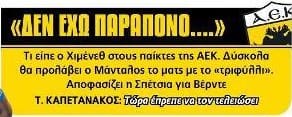 Ο ΤΥΠΟΣ ΓΡΑΦΕΙ... ΓΙΑ ΤΗΝ ΑΕΚ