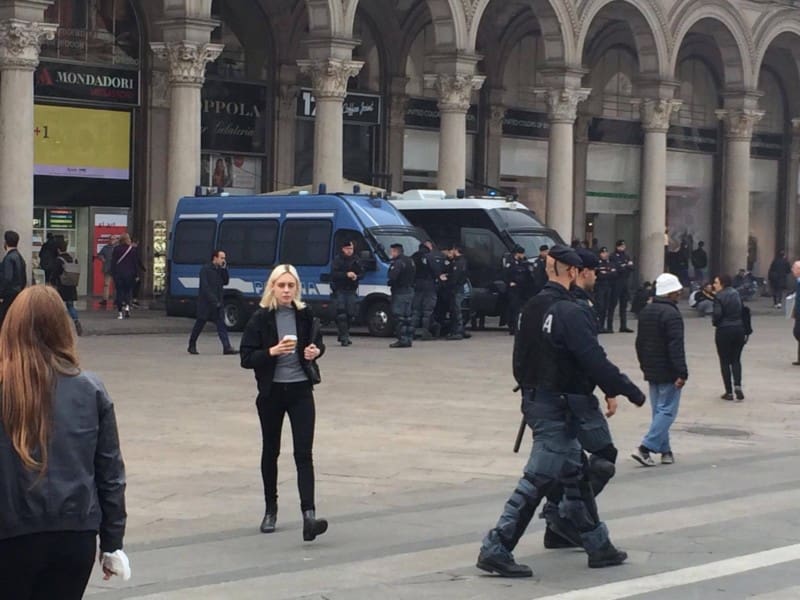Όπως βλέπουμε και στην εικόνα το κέντρο του Μιλάνου είναι γεμάτο από αστυνομικούς και έχουν ληφθεί αυστηρά μέτρα για να μην υπάρξουν παρατράγουδα.