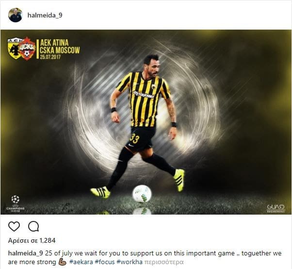 Το δικό του μήνυμα εν όψει της Ευρωπαϊκής πρεμιέρας της ΑΕΚ θέλησε να δώσει ο Ούγκο Αλμέιδα μέσω του λογαριασμού του στο ίνσταγκραμ αναφέροντας:«Στις 25 Ιουλίου σας περιμένουμε να μας στηρίξετε σε αυτό το σημαντικό παιχνίδι. Μαζί είμαστε πιο δυνατοί».