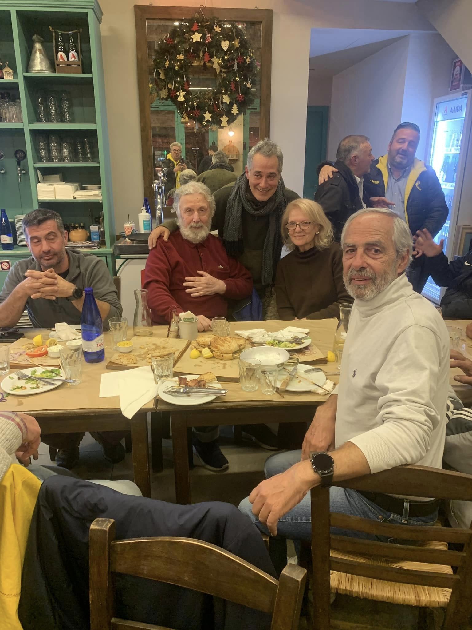 & ΑΛΛΩΣΤΕ είχε καταφτάσει ήδη και ο τελευταίος από τους καλεσμένους του Σωφρόνη, χωρίς να μας έχει ενημερώσει. Ο Στράτος Σεφτελής. Περιττεύουν οι συστάσεις. Αυτόματα οι συζητήσεις ανοίχτηκαν, πλάτιασαν, σε συνδυασμό με κάποια αναμνηστικά φωτογραφικά ενσταντανέ, τα οποία μας περιποιούν προσωπική τιμή, γιατί τα αποδέχτηκαν οι της παρέας. Και κρίμα, γιατί μία άλλη πολύ σφοδρή επιθυμία μας ήταν και πρακτικά αδύνατο να υλοποιούταν. Εννοούμε, ότι θα νοιώθαμε ακόμη πιο έντονα «κιτρινόμαυρο», αυτό, το κατά κάποιο τρόπο « ΑΕΚοχριστουγεννιάτικο βράδυ» (αυθόρμητο, όχι προκάτ, διόλου φτιασιδωμένο, απέριττο, με τα «λαμπόνια» να ήταν :η χαρά μας για το 3-0, τα δίχρωμα κασκόλ και οι φανέλες , που φορούσαν οι περισσότεροι μέσα στην αίθουσα και τα οποία ήταν νοερά συνδεμένα με το γήπεδο, όσο διάστημα ήταν «φωτισμένο» από την ομάδα μας).