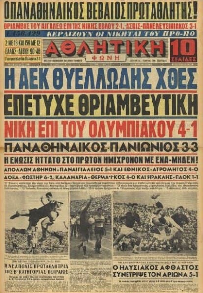 Για να φθάσουμε στη κατάκτηση του πρωταθλήματος εκείνη την χρονιά, προηγήθηκε ο θρίαμβος επί του Ολυμπιακού με το χορταστικό 3-0. Σκόρερς ο Κλεάνθης Μαρόπουλος στο 15΄, ο Γιώργος Σίμος (Μάγειρας) στο 63΄ και ο Κώστας Βασιλείου στο 84′. Αυτή ήταν η τελευταία επίσημη… προπολεμική παρουσία της μεγάλης ομάδας του δικεφάλου με αστέρια όπως ο Μαρόπουλος, ο Μάγειρας , ο Τζανετής, ο Μανέττας, ο Χατζησταυρίδης (μετά τον πόλεμο μεταγράφηκε στον Ολυμπιακό), ο Ρίμπας, ο Δελαβίνιας, ο ήρωας Σπύρος Κοντούλης, ο Βασιλείου…