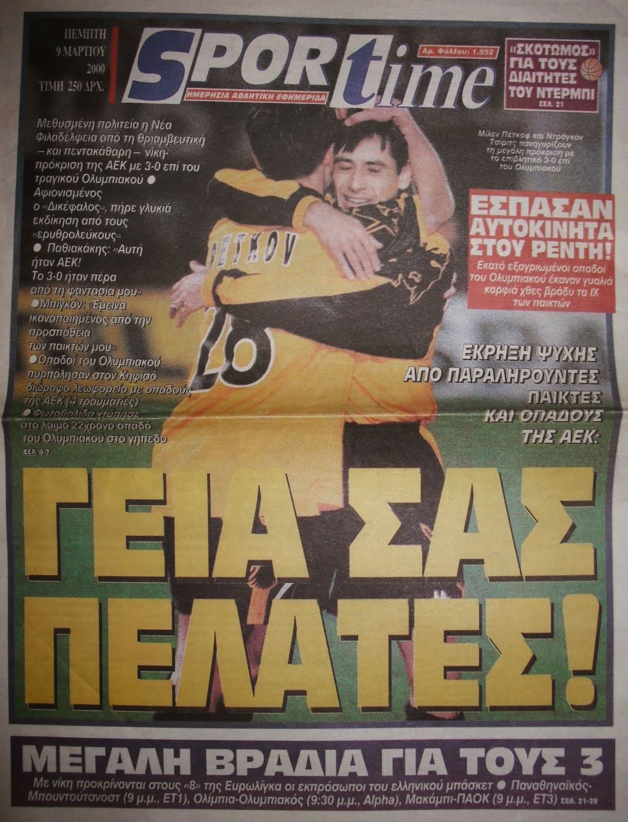 Η ομαδάρα μας εξευτέλισε τον Ολυμπιακό αλλά και τον Μπάγεβιτς που είχε υποσχεθεί πως αν πάρουμε το κύπελλο δεν θα έφευγε… Μας άφησαν με 9 παίκτες, δόθηκε ανύπαρκτο πέναλτι στον Ολυμπιακό για να μειώσει, αλλά και πάλι δεν μπόρεσαν να κάνουν τίποτα… Σκόρερς ο Ντανιέλ Μπατίστα στο 20΄ και στο 47΄ και ο Χρήστος Κωστής στο 26΄.