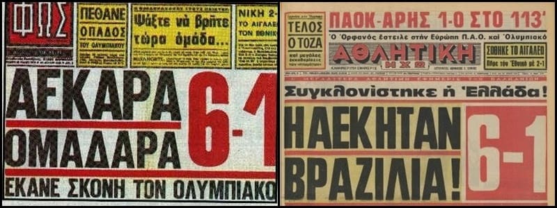 Η μεγαλύτερη νίκη στην ιστορία τηςΑΕΚ επί του Ολυμπιακού. Ακόμη παραμένει η μεγαλύτερη ήττα του Ολυμπιακού στο κύπελλο μέχρι και σήμερα. Το σκορ κολακεύει τους ερυθρόλευκους αφού στο τελευταίο εικοσάλεπτο οι παίκτες του Δικεφάλου χαμήλωσαν τον ρυθμό με τον Θωμά Μαύρο να δηλώνει αργότερα ότι το σκορ μπορούσε να φθάσει και 8-1 η 9-1. Τα έξι τέρματα σημείωσαν ο Ντούσαν Μπάγεβιτς, ο Θωμάς Μαύρος (3), ο Τάσος – περπατώντας με τη μπάλα στα δίκτυα (!) και ο Τάκης Νικολούδης που αργότερα φόρεσε και τη φανέλα του Ολυμπιακού στεναχωρώντας μας…