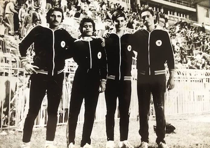 “My club was and still is AEK. Αθλητική Ένωση Κωνσταντινουπόλεως, was formed in 1924 by a group of Greek refugees who arrived after the Μεγάλη Καταστροφή, την Great Disaster of 1922, where thousands and thousands of Greeks living on the western coast of Turkey were violently pushed to the sea and had to return to mainland Greece. Both my parent’s families were from that refuge group. We lived two blocks away from the stadium. In AEK, people didn’t care about your political views, if you were rich or poor, if you were a champion or a beginner. We were all one big family. All my life I competed with the AEK colors and with the two headed eagle in the yellow and black, our symbol, on my chest. That is also the symbol of our church from the Byzantine times. You can see the same flag flying over many churches here in Greece and abroad”.