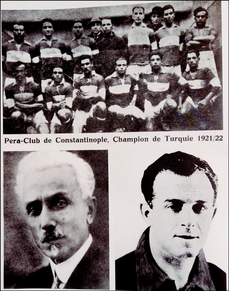 - Ο προπομπός της ΑΕΚ ήταν το Πέρα Κλαμπ. Στην ενδεκάδα που κατέκτησε το πρωτάθλημα Τουρκίας το 1922, δεσπόζει η παρουσία του Κώστα Νεγρεπόντη (τρίτος από δεξιά στους όρθιους). Δίπλα στο Σπανούδη ένα πορτρέτο του Νεγρεπόντη με τη φανέλα της ΑΕΚ.