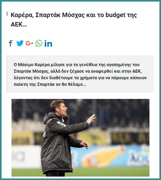 - Το ρεπορτάζ λέει ότι ο Καρέρα συζητάει με τον Κόντε και σίγουρα η Ίντερ διαθέτει παίκτες που μπορούν να ανεβάσουν επίπεδο την ΑΕΚ. Αλλά ποιος θα τους πληρώσει; Η Ίντερ; Μήπως η οικονομική τακτική στα γραφεία του Αμαρουσίου είναι χαμηλών προσδοκιών;
