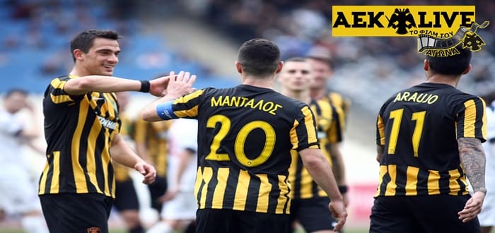 Ξέσπασμα της ΑΕΚ με εξάρα στον Λεβαδειακό με σούπερ Αραούχο που σκόραρε δις στο ντεμπούτο του. Μπακασέτας, Βάργκας, Κολοβέτσιος, Γαλανόπουλος τα υπόλοιπα τέσσερα.