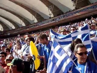 Περίπου 50 φίλαθλοι που από τα πρώτα έχουν κάνει αισθητή την παρουσία τους, βρίσκονται στην εξέδρα για να στηρίξουν την προσπάθεια των διεθνών μας. Μπράβο! Πηγή: sportdog.gr