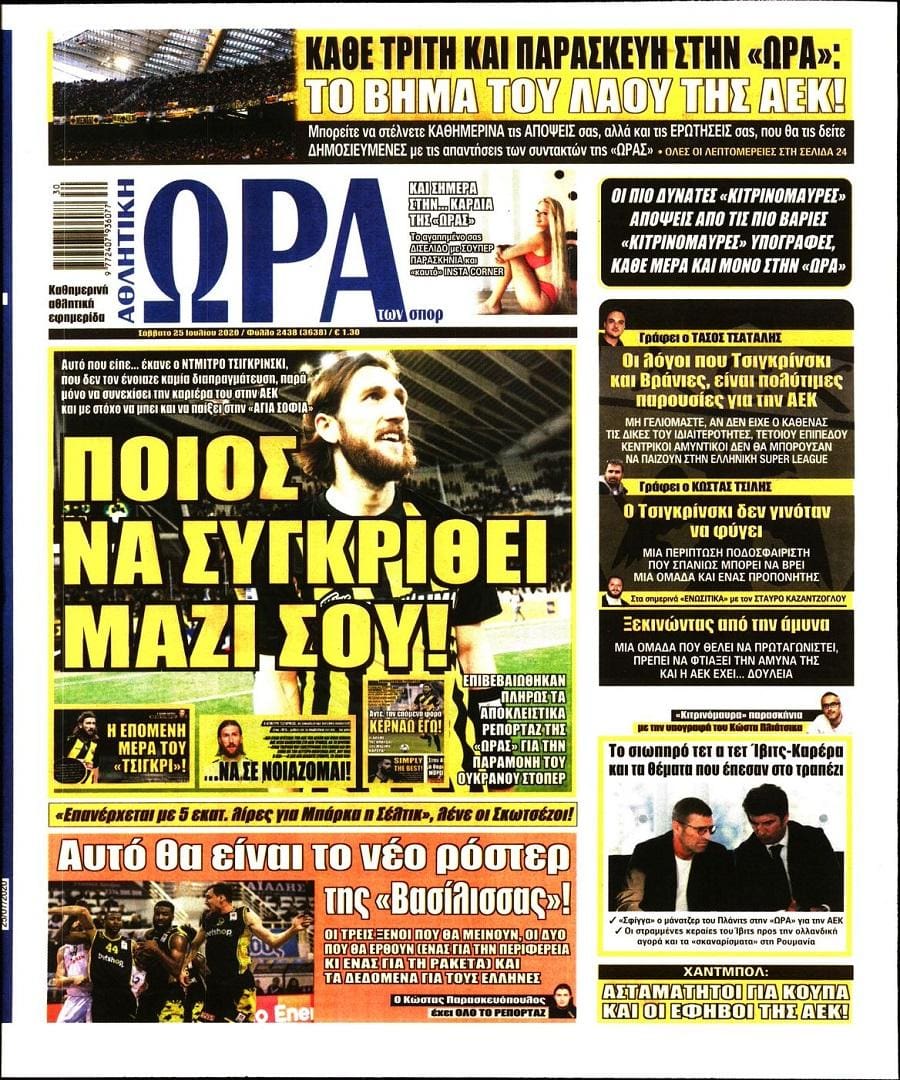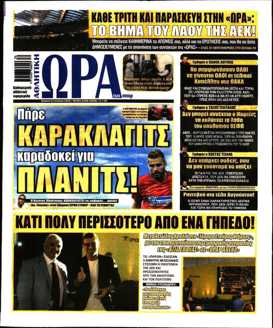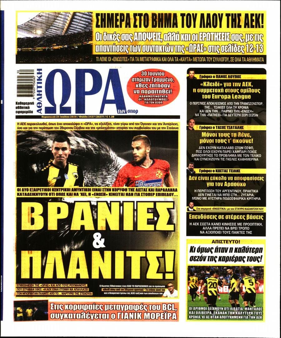 Μόνο η “Ώρα” σήμερα γράφει για την ΑΕΚ…