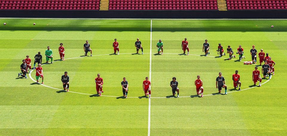 Η Λίβερπουλ τίμησε τον Αφροαμερικανό Τζωρτζ Φλόιντ που δολοφονήθηκε στις ΗΠΑ από λευκό αστυνομικό πριν λίγες ημέρες. Οι ποδοσφαιριστές της στη μνήμη του γονάτισαν στο κέντρο...
