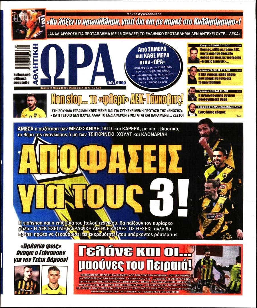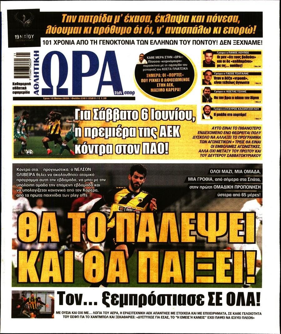 Όχι για εμάς. Για τους ποδοσφαιριστές. Εμείς αργούμε ακόμη. Απ’ ότι φαίνεται 6-7 Ιουνίου ξαναρχίζουν τα play off ενώ αυτή την εβδομάδα ξεκινούν και προπονήσεις με...