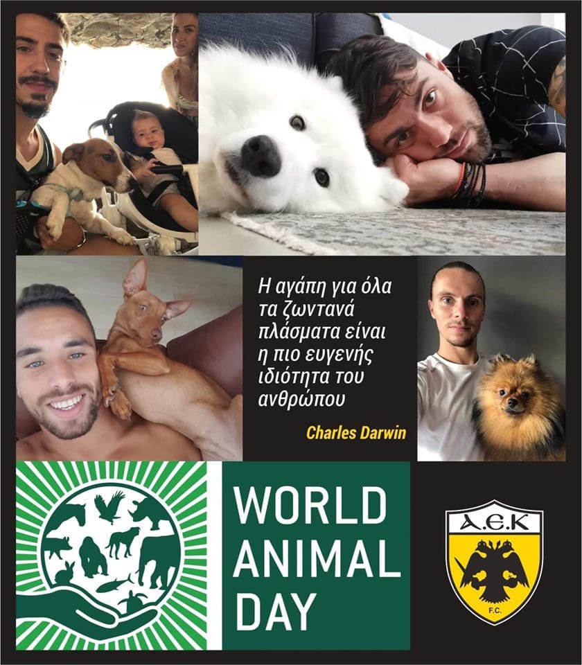 Την παραπάνω φωτογραφία με το εξής σχόλιο δημοσίευσε η ΠΑΕ ΑΕΚ με αφορμή την παγκόσμια ημέρα των ζώων: «The love for all living creatures is the...