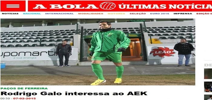 Η πορτογαλική εφημερίδα “A Bola” αναφέρεται και αυτή σε σημερινό της δημοσίευμα στο φημολογούμενο ενδιαφέρον της ΑΕΚ για τον Ροντρίγκο Γκάλο.Η εφημερίδα αναφέρει πως η Ένωση...