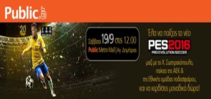 Το Σάββατο 19 Σεπτεμβρίου … από τις 12:00 έως τις 15:00 έχεις αγώνα! Το PRO EVOLUTION SOCCER 2016 έρχεται στο κατάστημα Public στο ATHENS METRO MALL...