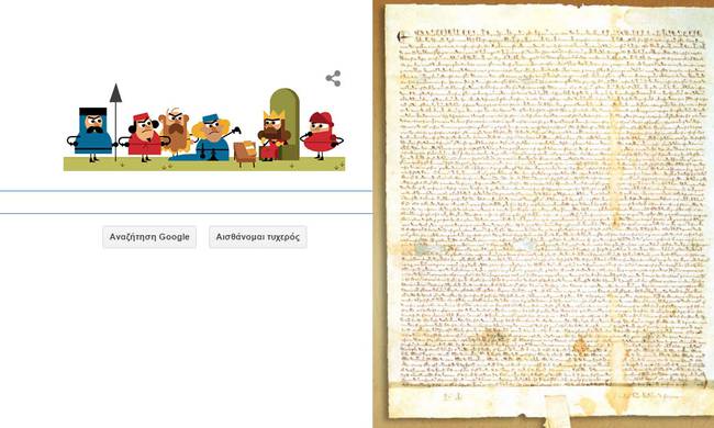 Τη Μάγκνα Κάρτα (Magna Carta), που αποκαλείται και Magna Carta Libertatum («Μεγάλος Χάρτης των Ελευθεριών»), τιμάει στο σημερινό της Doodle η Google, με αφορμή τα 800...