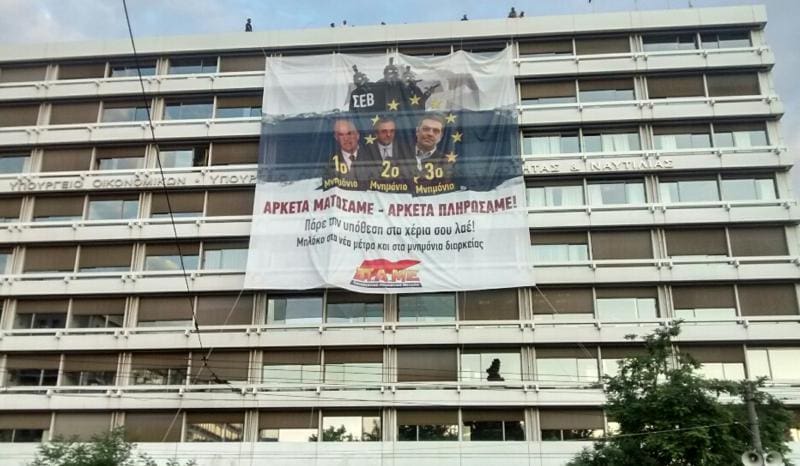 Εργαζόμενοι από δεκάδες σωματεία του Ιδιωτικού και του Δημόσιου τομέα που συσπειρώνονται στο ΠΑΜΕ, πραγματοποιούν κινητοποίηση στο Υπουργείο Οικονομικών. Με μια συνδυαστική κίνηση, ανέβηκαν στην ταράτσα...