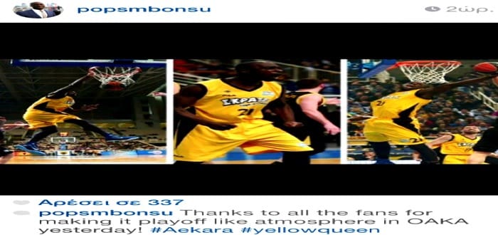 Μέσω φωτογραφίας που ανήρτησε στο instagram ο Μενσά Μπονσού ευχαρίστησε τους φίλους της ΑΕΚ που έδωσαν δυναμικό παρών στο ΟΑΚΑ. Ο Βρετανός σέντερ έγραψε: «Ευχαριστώ όλους...