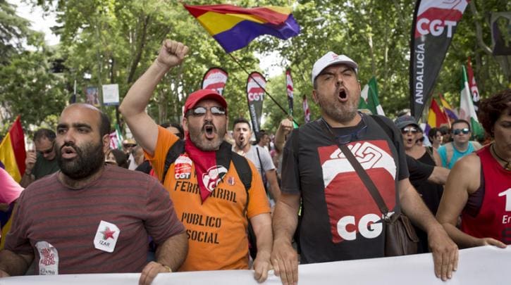 Στο στόχαστρο των συγκεντρωμένων βρέθηκε η μεταρρύθμιση της αγοράς εργασίας που υιοθετήθηκε το 2012 από την κυβέρνηση του Μαριάνο Ραχόι και ευθύνεται, όπως υποστηρίζουν, για την...