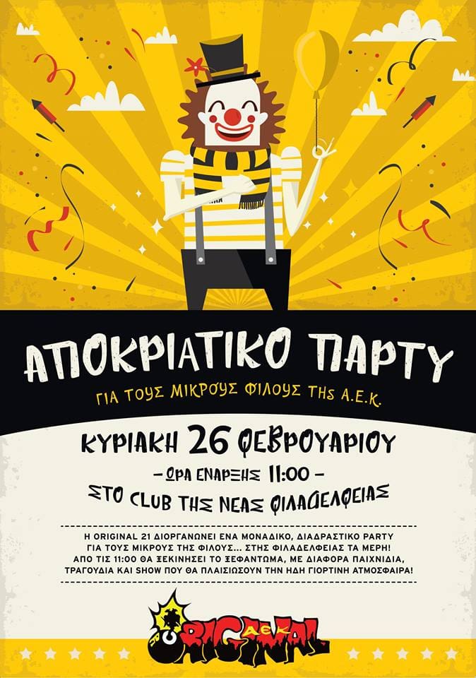 Το μέλλον της ΑΕΚ είναι εδώ.. Το μέλλον της ΑΕΚ είναι τα παιδιά μας ! Υποδεχόμαστε τους μικρούς μας ORIGINALISTES στο αποκριάτικo μας πάρτι …ένα πάρτι...