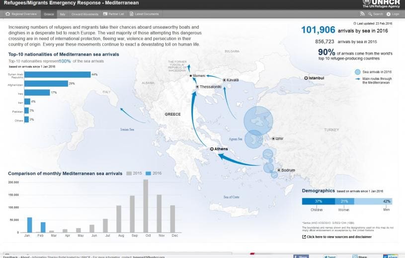Τον τεράστιο όγκο προσφυγικών ροών που καλείται να αντιμετωπίσει η Ελλάδα αποτυπώνει διαδραστικό γράφημα της Ύπατης Αρμοστείας του ΟΗΕ για τους πρόσφυγες. Σύμφωνα με αυτό από...