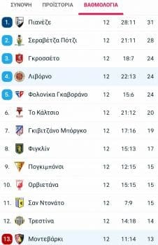 Ερχόμαστε τώρα στην αυριανή αναμέτρηση όπου οι Amaranto σε μία ζόρικη έξοδο στο βορρά της Τοσκάνης θα αντιμετωπήσουν την Montevarchi, δυο ομάδες που έχουν να διασταυρώσουν τα ξίφοι τους πίσω στο μακρινό 2000. Εδώ η βαθμολογία όπως διαμορφώνεται αυτή τη στιγμή: