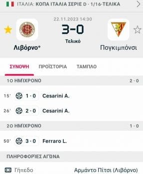 Έπειτα από την πρόκρι είχαμε και την κλήρωση για την φάση των 16 του θεσμού, όπου η Λιβόρνο θα αντιμετωπίσει την Φαλόνικα Γκαβοράνο, μία πολύ δυνάτη αντίπαλο, εντός έδρας την ερχόμενη Τετάρτη στις 15:30 ώρα Ελλάδος επίσης.