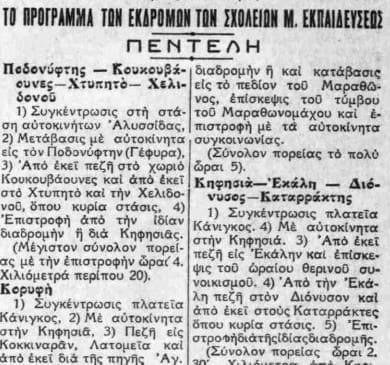 Δημοσίευμα της εφημερίδας Αθλητικά Χρονικά το 1932… Εκδρομές στην Αθήνα με φόντο τον Ποδονίφτη, τη Νέα Φιλαδέλφεια δηλαδή…