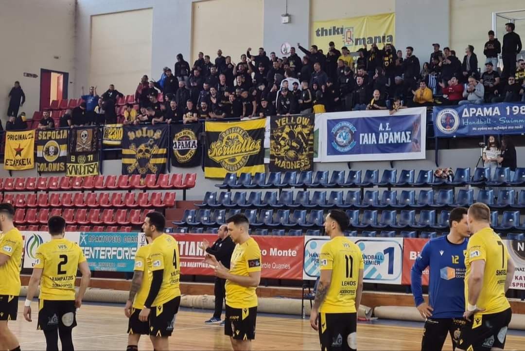 Εντυπωσιακή παρουσία των οπαδών της ΑΕΚ στη Δράμα, κοντά στην ομάδα Χάντμπολ. Είναι διαφορετικό να είσαι ΑΕΚ…