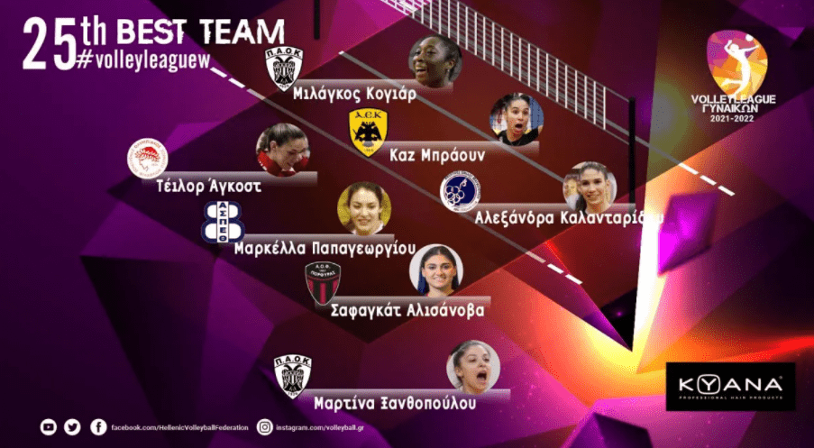 Ακόμα μία σπουδαία διάκριση για την αθλήτρια της ΑΕΚ, Καζ Μπράουν, η οποία συμπεριλήφθηκε στην κορυφαία επτάδα της 25ης αγωνιστικής της Volley League Γυναικών H Μπράουν...