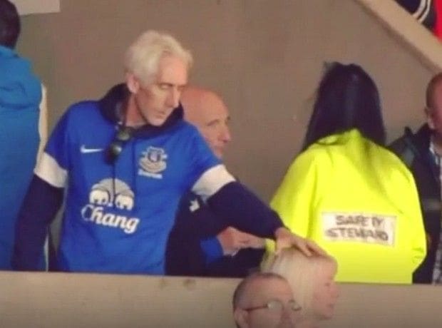 Οπαδός της Έβερτον καθάρισε τη μύτη του στην αναμέτρηση με τη Σάντερλαντ, ξεφορτώνοντας το… υλικό πάνω στο κεφάλι μιας κυρίας. Χωρίς να ξέρει ότι καταγράφεται εκείνη...