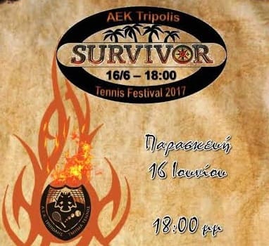 Η διοίκηση και η προπονητική ομάδα της ΑΕΚ Τρίπολης σας προσκαλούν στο SURVIVOR Tennis Summer Festival 2017 του ομίλου, που θα πραγματοποιηθεί την Παρασκευή 16/6/2017 και...